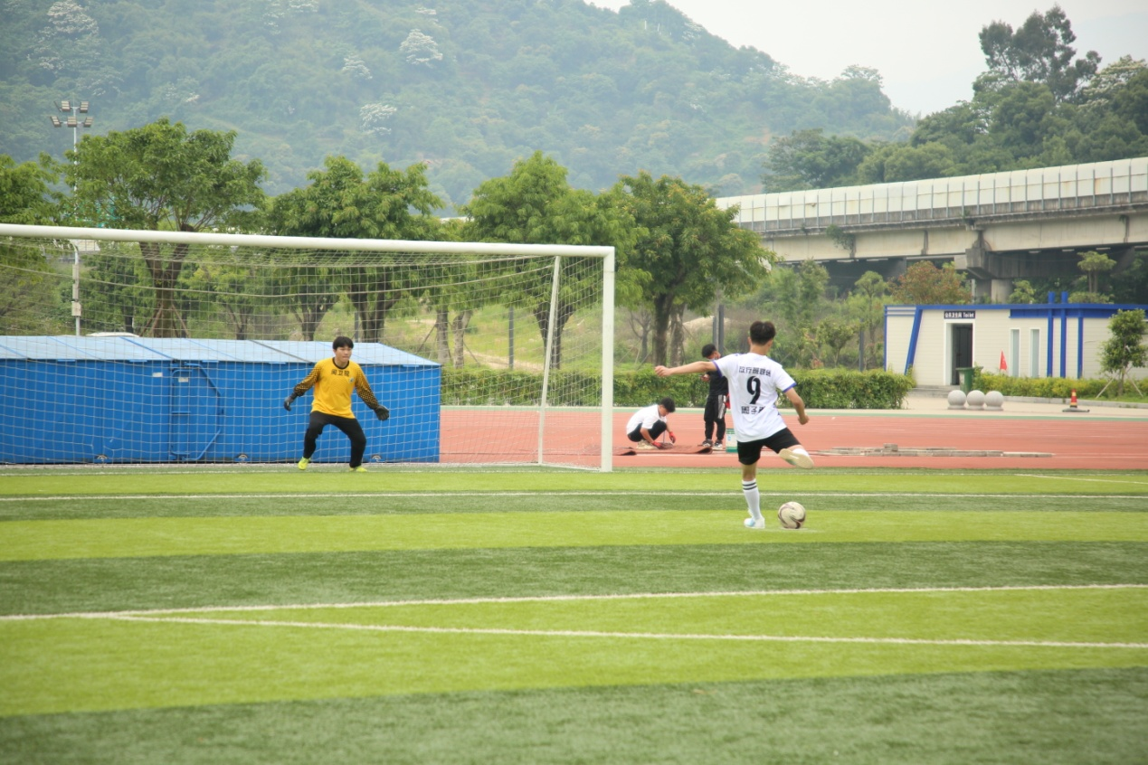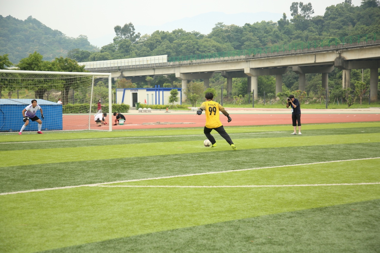 观众们的加油声响彻整个绿茵场,鼓舞着每一位球员。经过90分钟的鏖战,。双方平分秋色,随后双方队员进行了精彩的点球大战,身体和心理都得到了锻炼,在一片友好的气氛中激烈的比赛落下了帷幕。