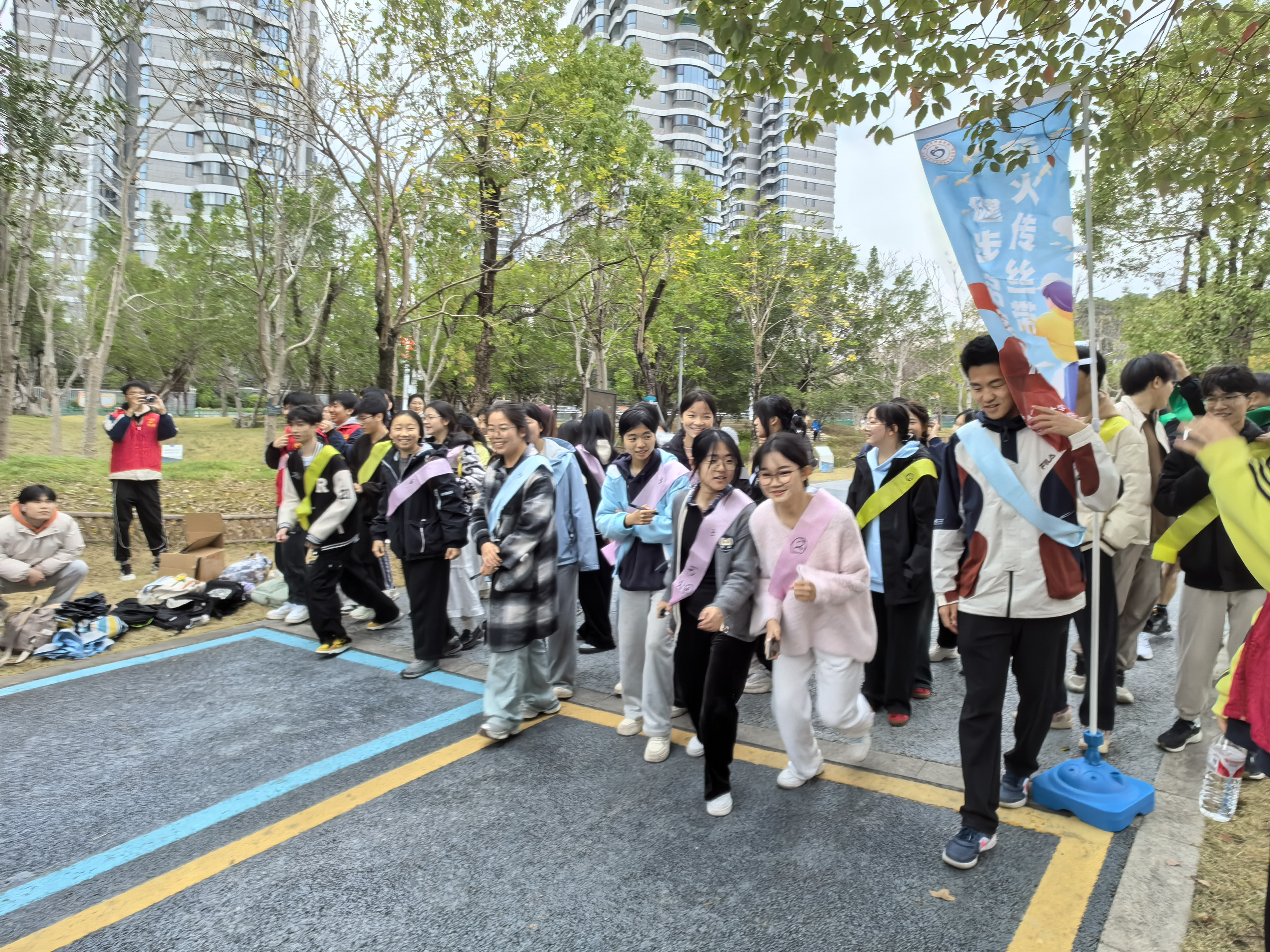 在鹤林生态公园,学生们聚焦防癌意识科普,向游客们赠送防癌宣传手册,详细地讲解防癌宣传手册中的内容,让每位听众都能清晰地了解癌症的基本知识,掌握科学的防癌知识。通过学生们的讲解,大家对癌症有了全新的认识,打破了以往的误解和恐惧。随后,师生们开展了健步行活动。在活动中学生们不仅锻炼了体魄,也感受到坚持的力量,体会到健康生活的重要性,师生间的互动也拉进了彼此的距离,增强了团队凝聚力。
