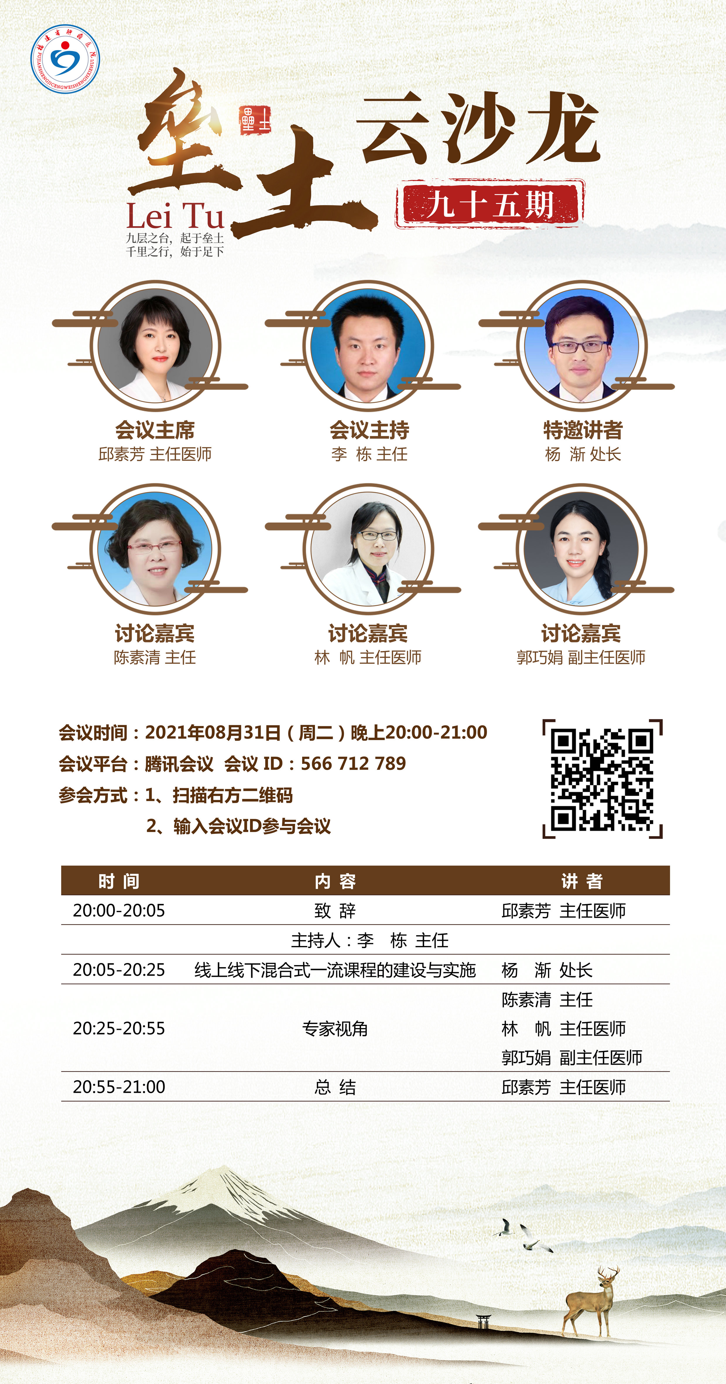 此外,本次沙龙活动我们邀请到福建省肿瘤医院团委书记、教学办李栋主任担任主持人,同时还邀请到福建省立医院老年医学科林帆主任医师、福建医科大学附属第一临床学院儿科教研室陈素清副主任医师以及福建省肿瘤医院头颈放疗科郭巧娟副主任医师共聚一堂。各位富有教学经验的专家,将针对目前一流课程建设的现状与发展进行热烈的交流,如此别开生面、大咖云集的视听盛宴,一定不容错过。欢迎各位同仁认真聆听并踊跃参与!