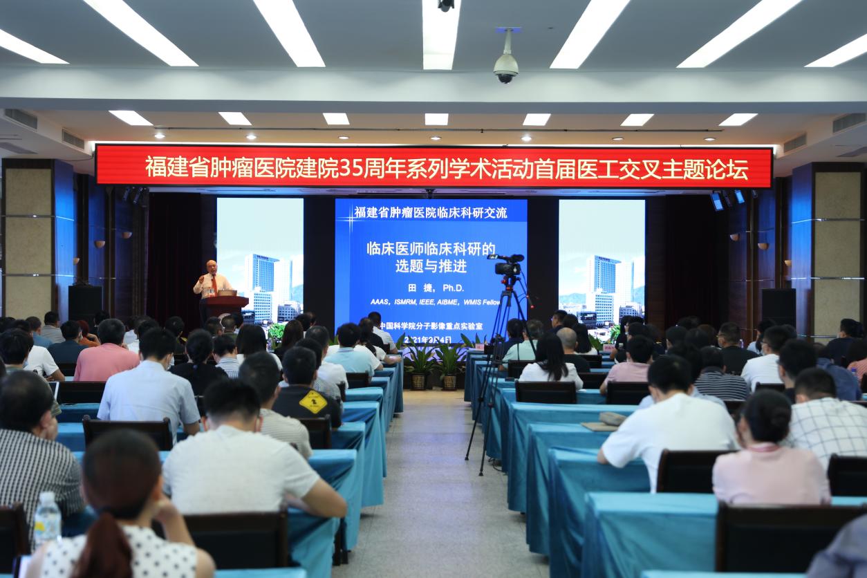 9月4日,我院建院35周年系列活动之一、首届医工交叉主题论坛在影像楼6楼会议室举行。邀请中国科学院大学教授、博士生导师、中国科学院分子影像重点实验室主任 田捷教授及团队进行交流。我院党委书记刘景丰教授致欢迎词,院长陈传本教授作总结。全院主治医师(主管技师)以上人员到场参会,一千余人线上观摩。