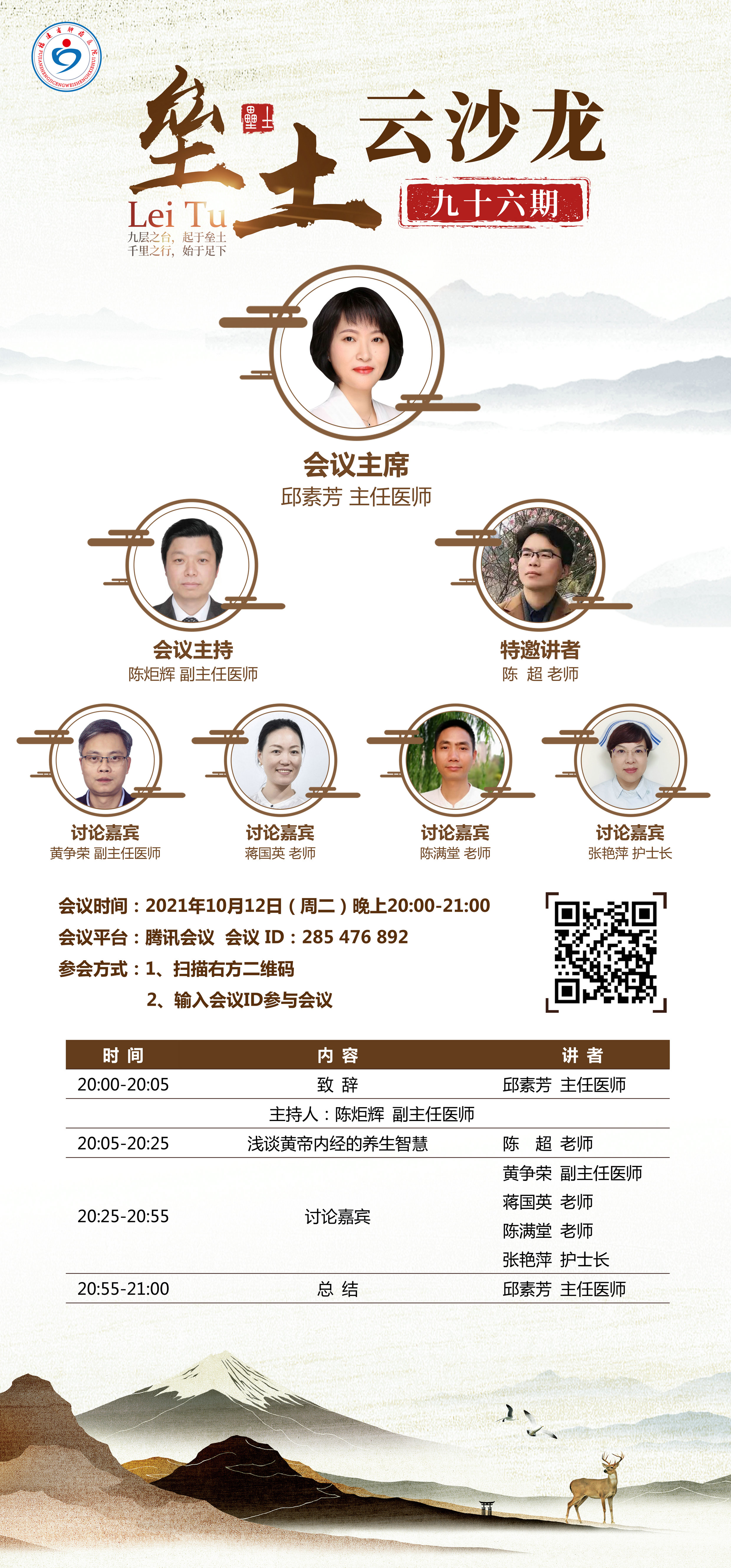 本次沙龙同时邀请了福建省肿瘤医院放疗科陈炬辉副主任医师担任主持人,福建省肿瘤医院中西医结合科黄争荣副主任医师、福州泰和堂中医门诊部创始人蒋国英医师、得善书院首席文化顾问陈满堂老师以及福建省肿瘤医院胸部肿瘤外科张艳萍副主任护师共同参与讨论。相信通过陈超老师的精彩演讲与各位讨论嘉宾的经验分享,我们定会对科学养生,提高生活质量有深刻的认识。欢迎各位同仁认真聆听并踊跃参与!