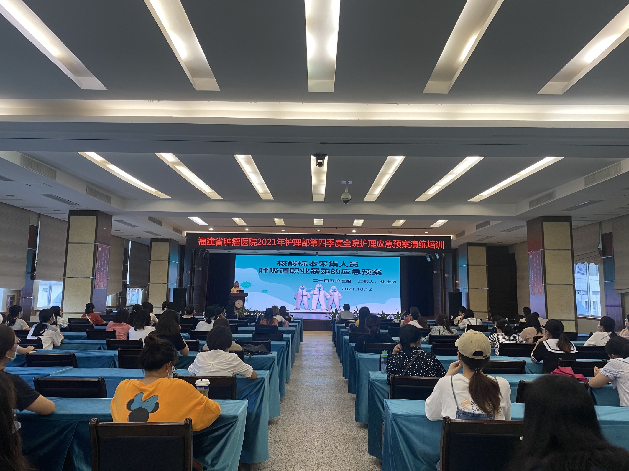 10月12日,护理部举办了第四季度核酸标本采集人员呼吸道职业暴露的应急预案演练培训,旨在通过演练,以点带面全面提高我院护理人员自我防护意识及处置能力。本次护理应急预案演练培训由护理部焦永娟主管护师主持,24区腹部内科吴光峰护士长组织护理组进行演练实战汇报,全场100多名来自各病区的护理骨干现场进行观摩学习。