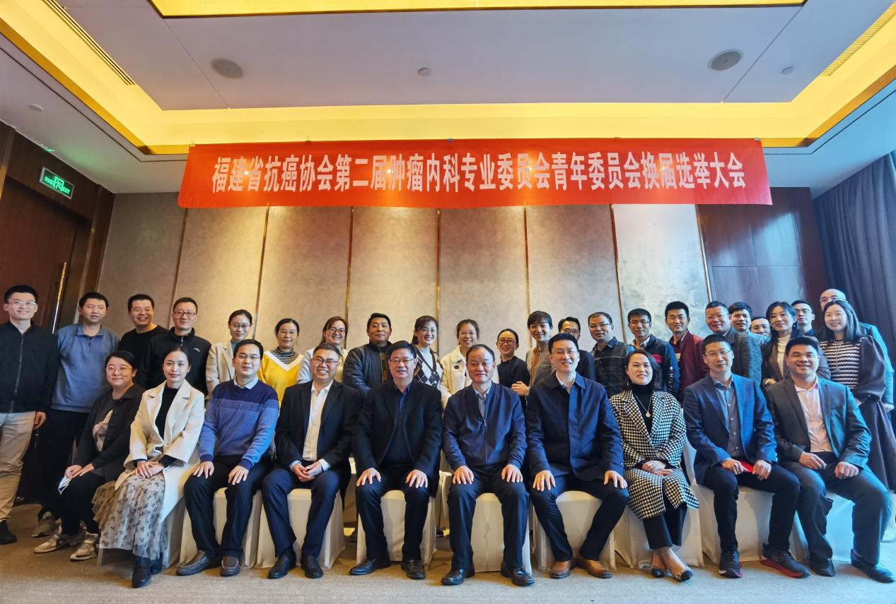 会议选举福建省肿瘤医院徐海鹏为青委会主任委员,福建医科大学附属附一医院王自力、福建医科大学附属协和医院王晗、联勤保障部队第九00医院陈雄、厦门大学附属中山医院吴辉塔、福建省肿瘤医院张龙凤为副主任委员。福建省肿瘤医院林秀容任青委会委员兼秘书。