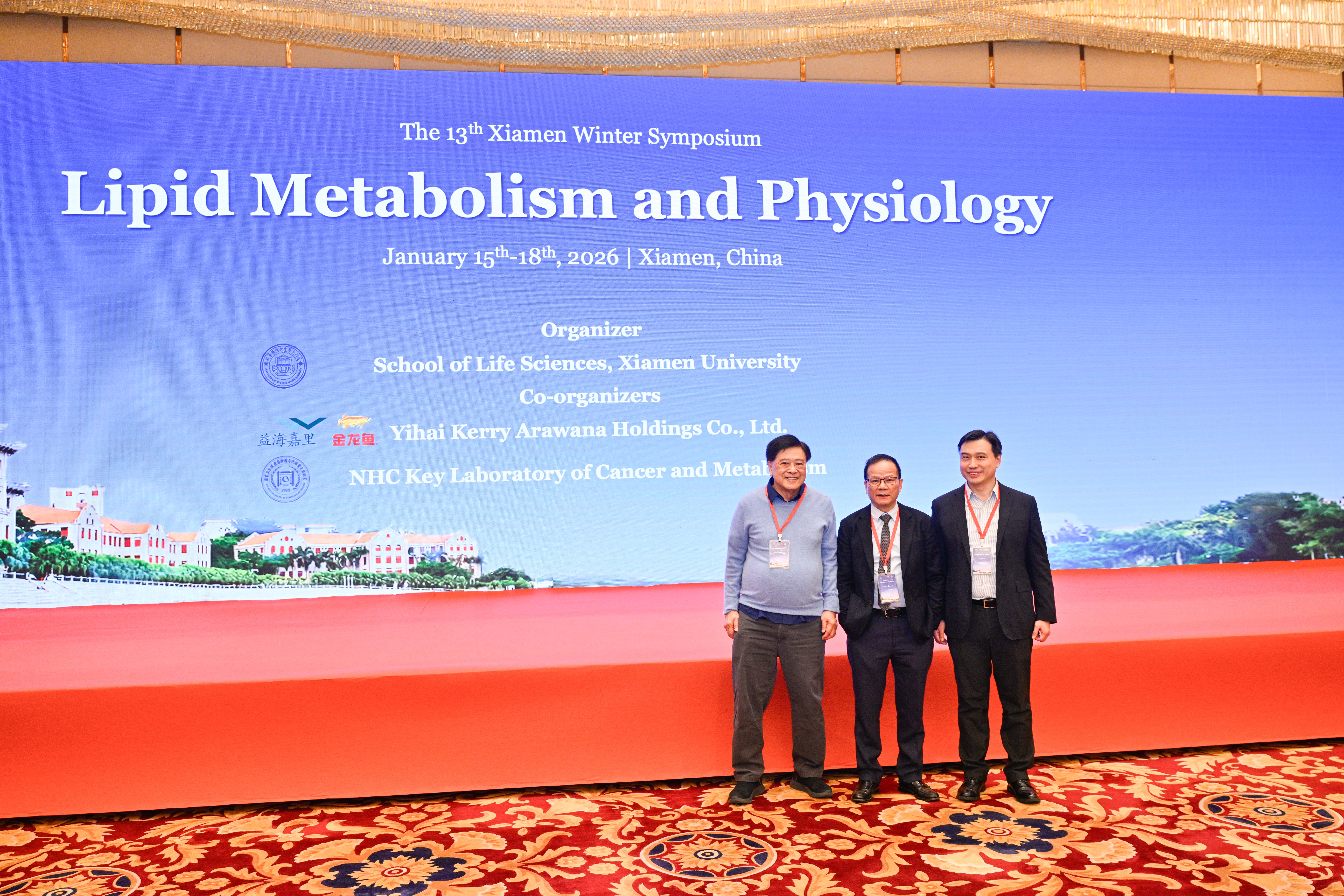 2026年1月15日至18日,由国家卫生健康委肿瘤与代谢重点实验室、厦门大学生命科学学院等联合举办的“第十三届厦门冬季学术会议——脂质代谢与生理学国际会议”在厦门举行。大会开幕式由会议主席中国科学院院士林圣彩和中国科学院外籍院士、英国皇家学会院士蔡南海共同主持。国家卫生健康委肿瘤与代谢重点实验室副主任、我院副院长陈誉教授率重点实验室科研骨干参会。