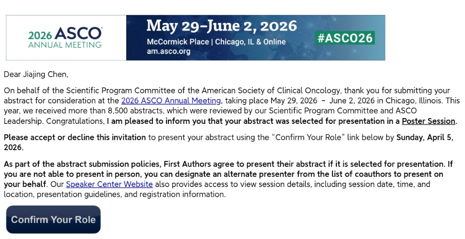 此次4项研究同时入选ASCO年会,体现了我院研究团队在消化道肿瘤精准治疗领域的持续深耕与创新突破,并获得国际认可。未来,团队将继续以临床需求为导向,深化高质量临床研究,为肿瘤患者带来更多获益。