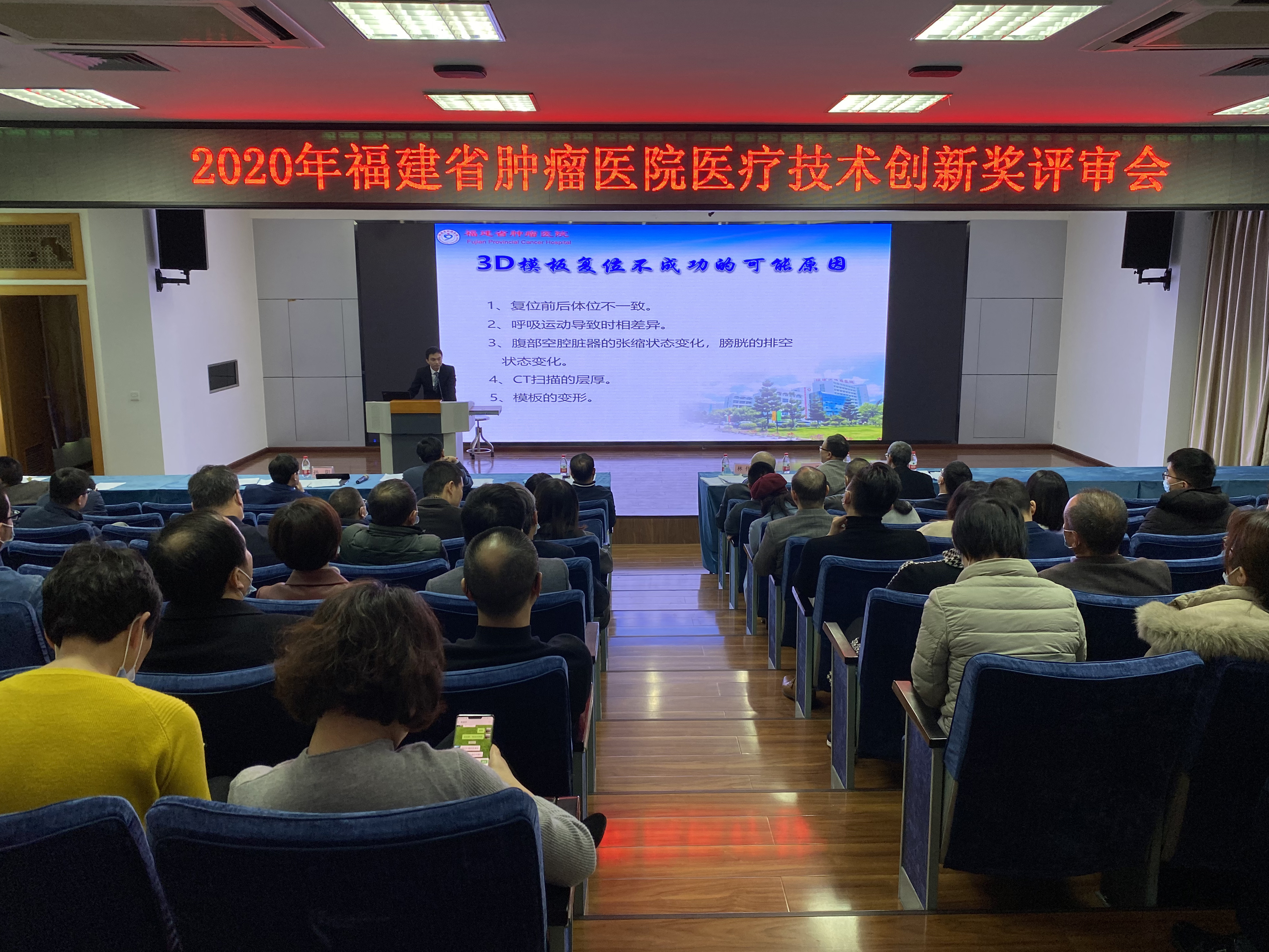 1月5日,我院在科研楼11楼学术厅举行2020年医疗技术创新奖评审会,对通过初审的16个创新奖申报项目进行评审。评审专家组由我院相关领导及省立金山医院郭延松副院长、福建医科大学附属协和医院医务部吴勇主任组成。我院全体创新奖申报项目汇报人、临床医技科室负责人及主诊医师等医护人员参加。