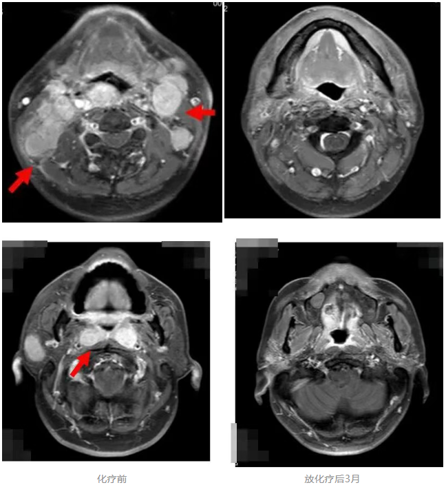 目前,患者仍坚持调整性(减量、间隔周期)口服卡培他滨,无明显副反应,最新复查显示EB病毒DNA阴性持续4年左右,影像学检查未发现复发或转移,保持临床治愈状态。