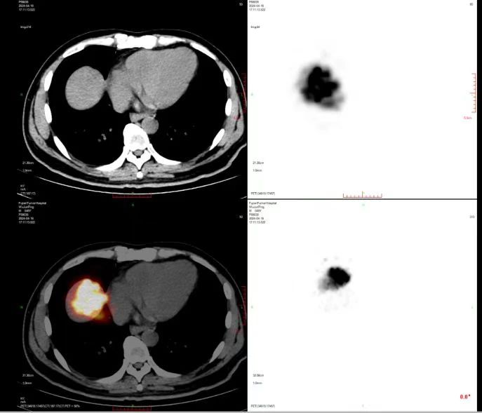 术后即时PET-CT显示钇90放射性微球完全分布在肿瘤内,正常肝实质未受影响