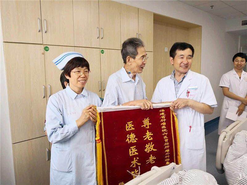 ▲患者顺利出院,向杨春康教授赠送锦旗表示感谢