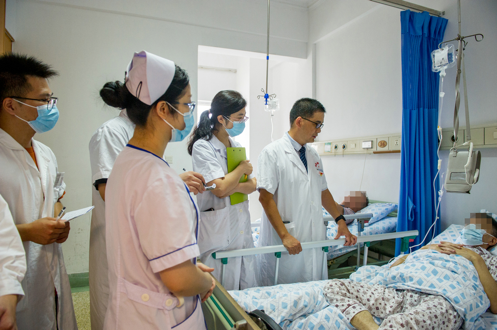 住进福建省肿瘤医院,老王的精神好多了 癌痛也是病不能光靠忍 林榕波为患者检查镇痛泵 精准治疗九成癌痛可控