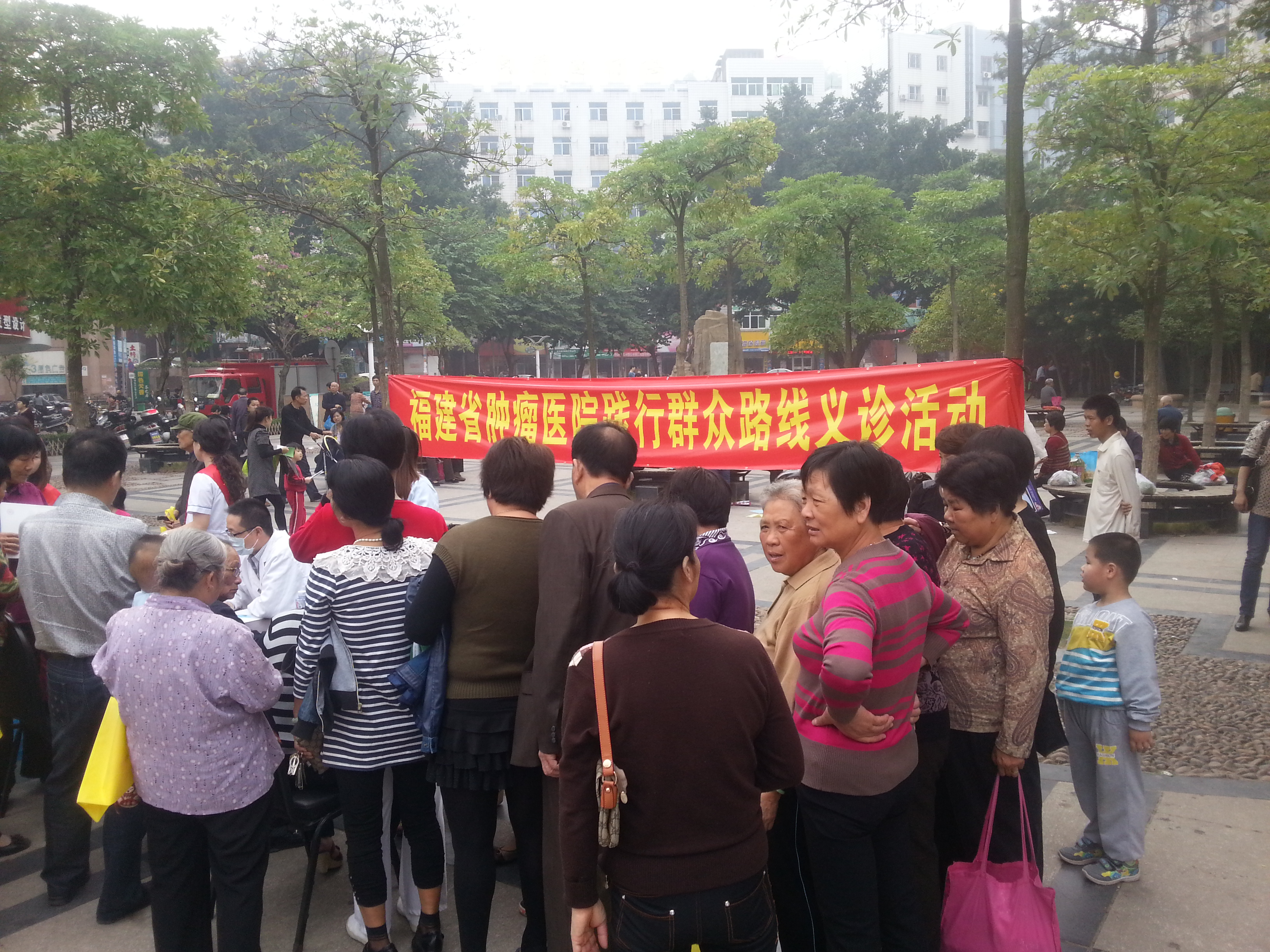践行群众路线义诊活动。11月9日,我院巾帼文明岗开展践行群众路线义诊活动,在闽清县城展开,义诊专家分别来自我院内科、外科、放疗科及妇科,在活动现场免费为群众测量血压及检测血糖,当地市民向义诊的医生护士了解自己的身体健康方面的问题,医务工作者们纷纷给予了耐心仔细的回答,并指导市民如何从饮食和生活习惯上预防癌症等等相关知识,大力进行肿瘤早期防治知识普及,使广大人民群众提高防癌意识。共为群众义诊300余名、发放健康宣传手册800余册,受到了当地老百姓的热烈欢迎和普遍好评。