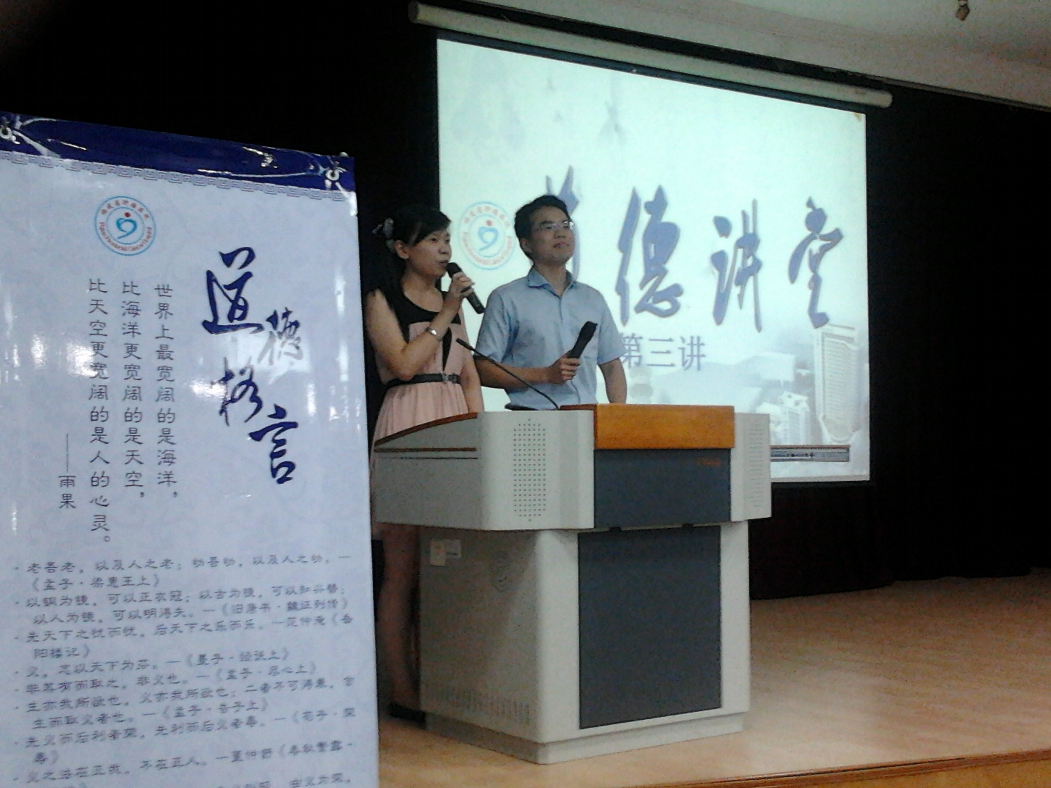 8月27日下午,根据医院党委的统一部署,由行政二支部主办的“福建省肿瘤医院道德讲堂”第三讲在《公民道德歌》的歌声中拉开了序幕。本期道德讲堂的主题:医德与医术。