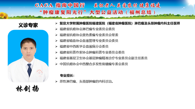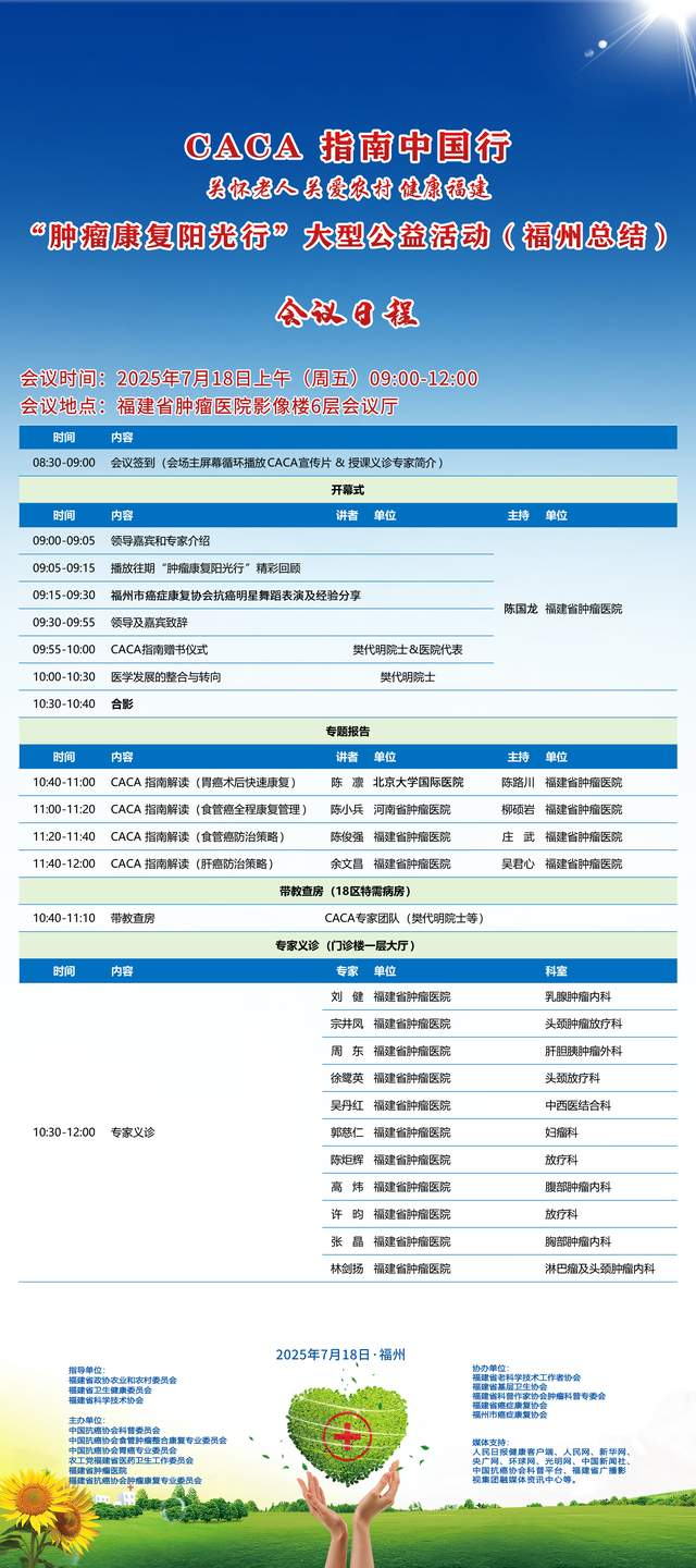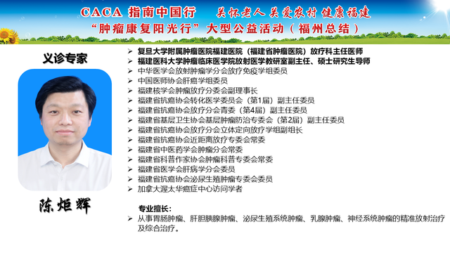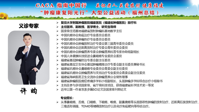 《CACA指南》立足中国人群、纳入中国研究、展现中国成果、兼顾医疗可及性、辐射基层、注重“防-筛-诊-治-康”全程规范管理,兼具中国特点和国际视野,是我国肿瘤学界最权威的指南,也是世界肿瘤领域的集大成者。为推动全国癌症防控事业发展的肿瘤指南规范体系,帮助广大医务工作者不断学习新理念、新技术、新疗法,掌握应用新药物,更好地服务患者;更能够帮助各医疗单位、医学院校、科研机构积极引入最新诊治理念、诊治技术,努力培养与临床应用接轨的高素质人才,中国抗癌协会联合相关单位在全国范围内,组织开展“CACA指南中国行”系列活动,掀起全国“学指南、用指南、遵规范”的热潮,助力并推动健康中国行动(2019—2030年)癌症防治目标的实现。“肿瘤康复阳光行”系列公益活动是省抗癌协会面向全省基层,主要聚焦服务老年和农村肿瘤患者,持续开展以“质量提升,规范先行”为主题的全省义诊及巡讲培训等科技志愿服务活动,活动旨在倡导积极预防癌症,推进早筛查、早诊断,降低癌症发病率和死亡率。