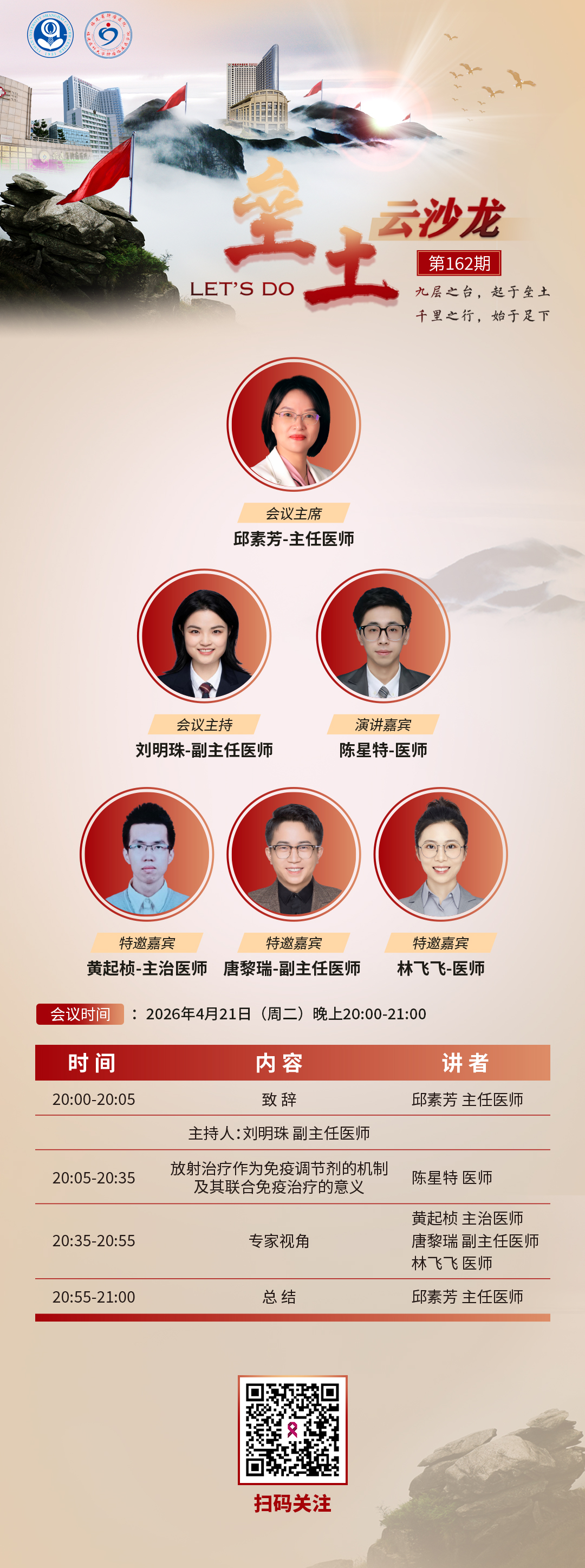 本期垒土沙龙(第162期)邀请到的嘉宾是福建省肿瘤医院放疗中心的陈星特医师,他将给我们带来主题为“放射治疗作为免疫调节剂的机制及其联合免疫治疗的意义”的精彩演讲。
