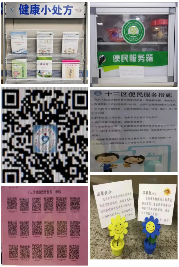 病区通过多种形式的健康教育,充分发挥护士队伍的专业性,将健康知识与技能多样化、具体化和简单化,用实际行动推进“我为群众办实事”实践活动。如“健康小处方”、“便民服务箱备有电吹风等”、“病房VR导航”、“健康教育二维码”、“温馨提示卡”等等举措。