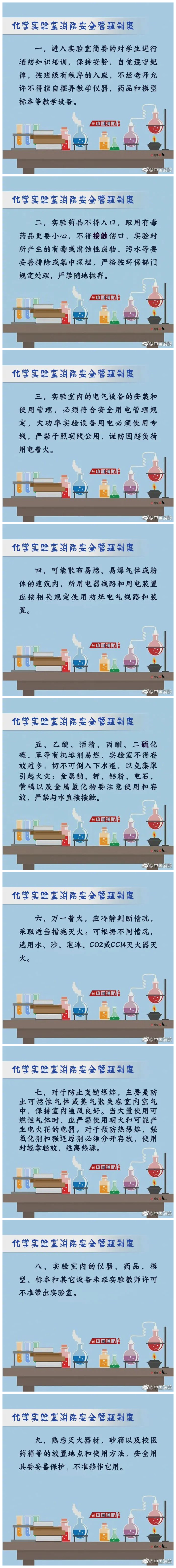 校园实验室中存放各类化学药剂,是学校防火重点部位。化学实验的火灾危险性相对较大,进行实验必须严格依照规程操作,实验前一定要了解安全规程。