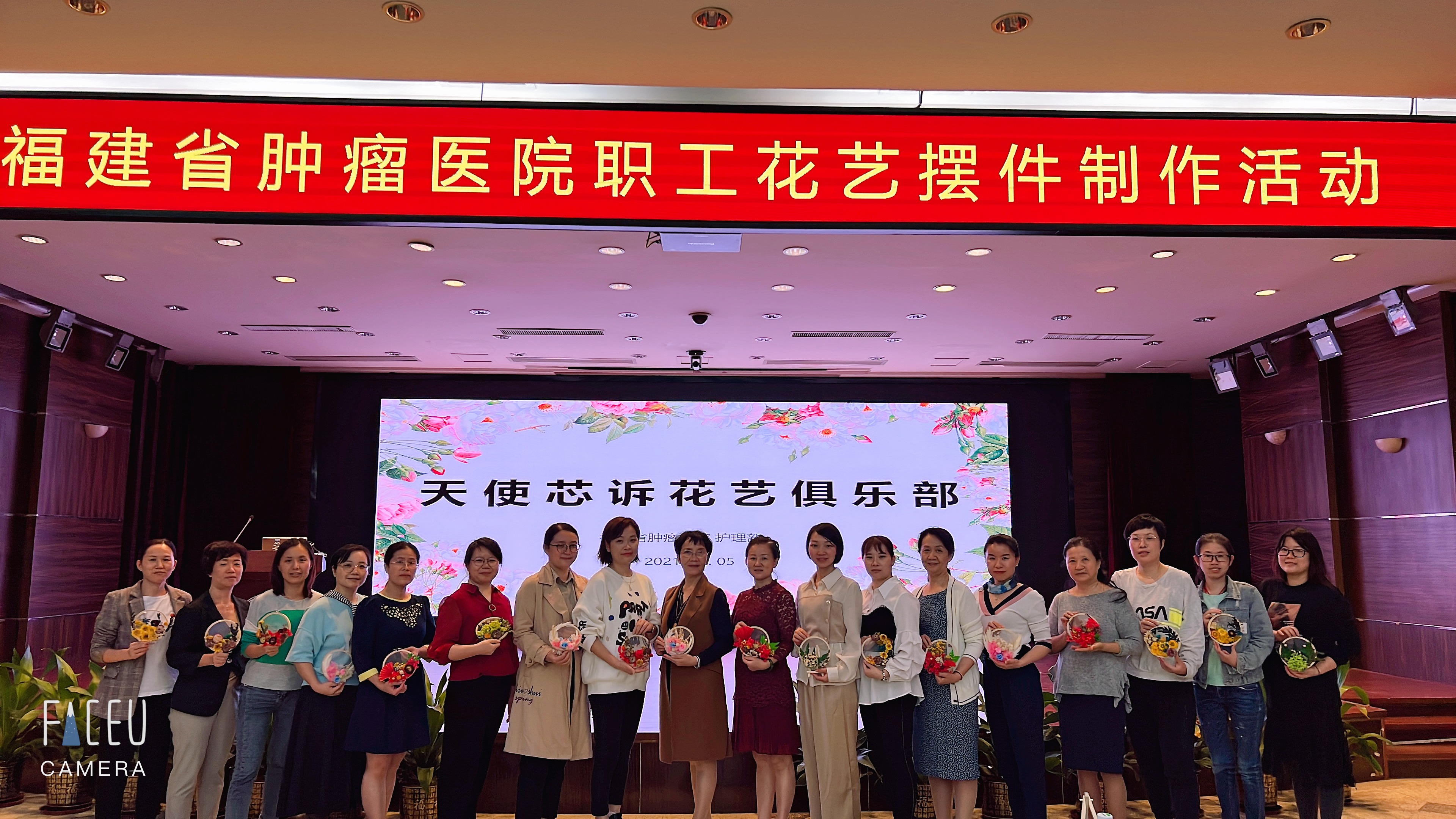 一朵朵永生花经过护士们的巧手变为了造型别致、富有情感的花艺作品,会议室里也弥漫着淡淡的芬芳,缀花拾叶复归自然,和花儿相遇见,花事明媚享秋日清凉。大家在这场花艺体验中,收获了愉悦的心灵体验,同时也将这份美丽的永生花作品点缀成自己独特的祝福,祝愿福建省肿瘤医院35周岁生日快乐。