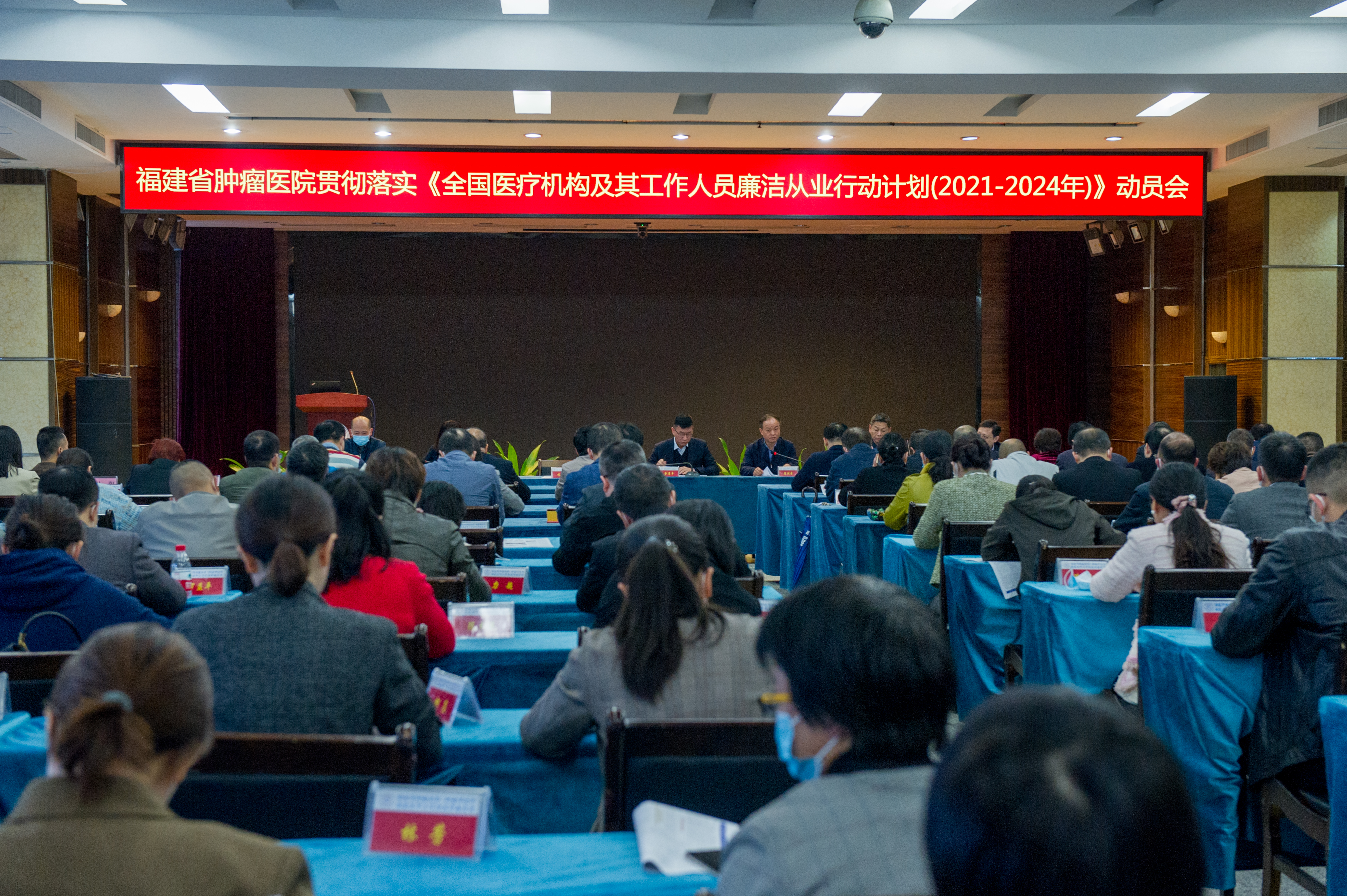 11月22日下午,福建省肿瘤医院召开贯彻落实《全国医疗机构及其工作人员廉洁从业行动计划(2021-2024年)》动员会。院领导、各党支部书记、各科室负责人以及护士长等参加会议。