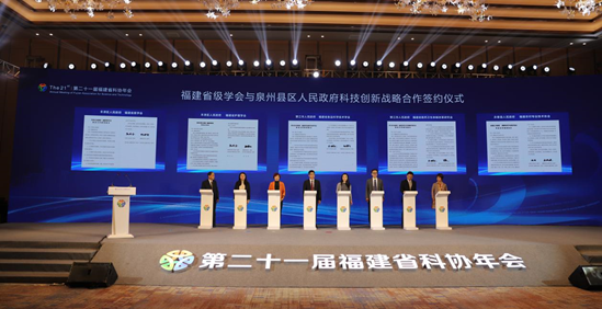 △骆惠玉(左三)代表省护理学会与泉州市丰泽区人民政府签约。